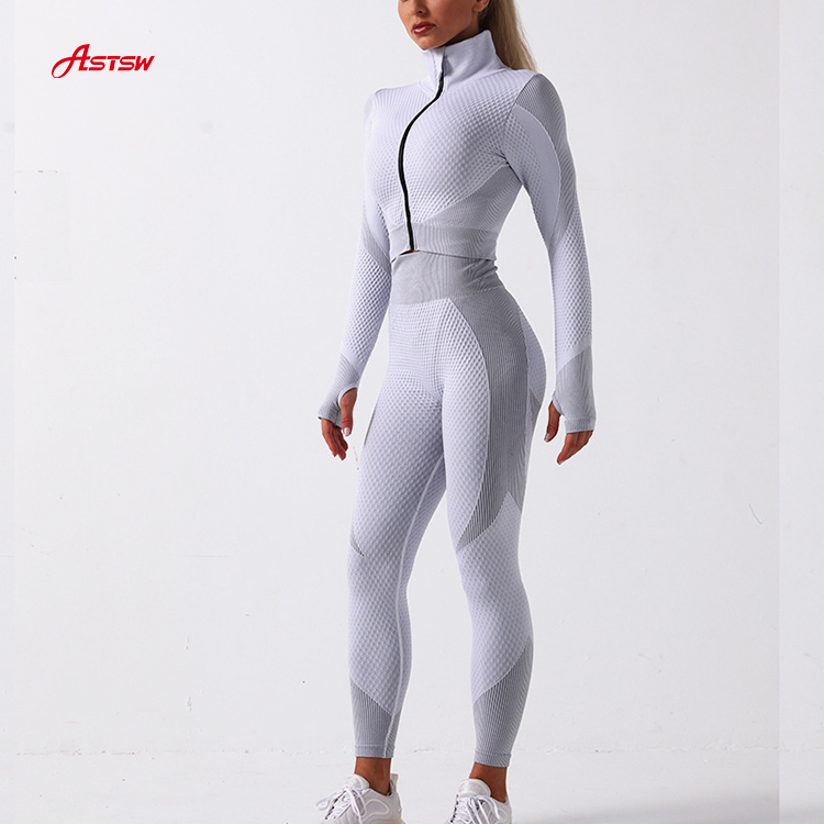 Treinando na academia? Nosso conjunto de três peças de listras femininas sem costura são muito adequados à pele , e o design exclusivo de levantamento do quadril mostra a curva perfeita do corpo. Zíper de lapela casaco de porto,t O casaco desportivo de manga comprida e curto pode torná-lo mais confortável quando faz exercício,p areje-o com as mesmas leggings de sutiã, te deixa mais confortável. O design cross beauty back permite que você não se distraia mais, o design do quadril mostra melhor a curva do seu corpo. O novo design serpentino é muito original e bonito. Amostra pronta disponível para você verificar a qualidade e o preço de atacado oferecido por etiqueta privada.