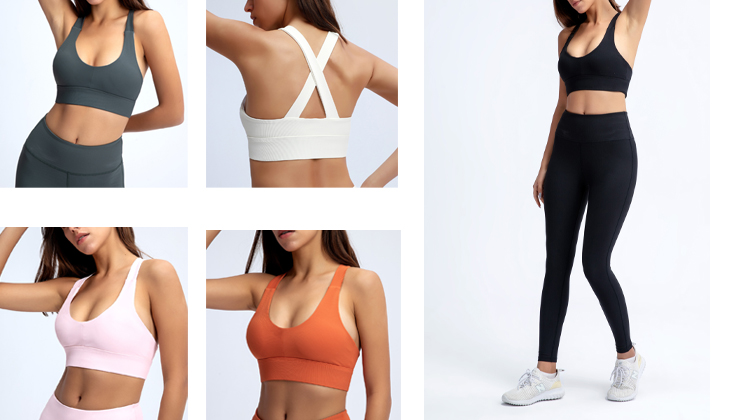 A composição do material de sutiã esportivo racerback inclui 78% de náilon e 22% de elastano. Apresentando um trecho de quatro vias, Tecido que absorve a umidade, respirável e ultramacio, este sutiã esportivo cross back dá-lhe uma boa forma.