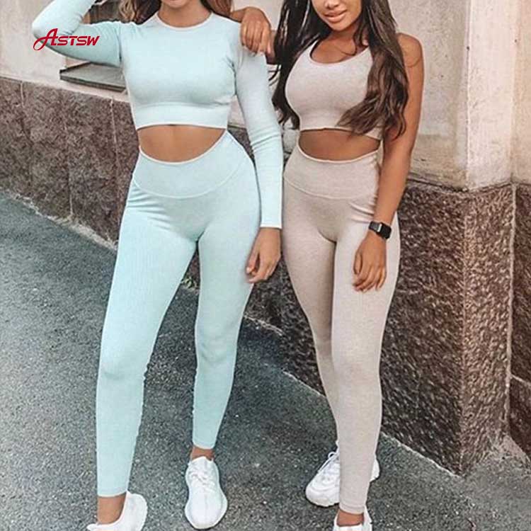 Conjunto de leggings de cintura alta sem costura de fitness