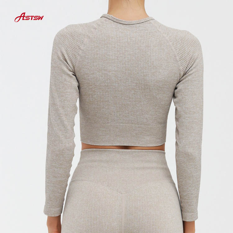 Conjunto de roupas de ioga de mangas compridas sem costura
