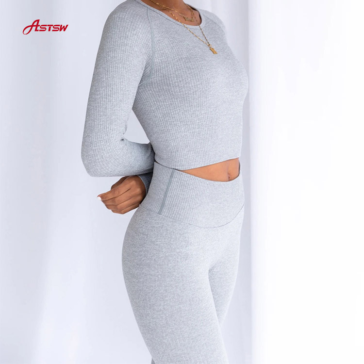Conjunto de mangas compridas sem costura de roupas esportivas