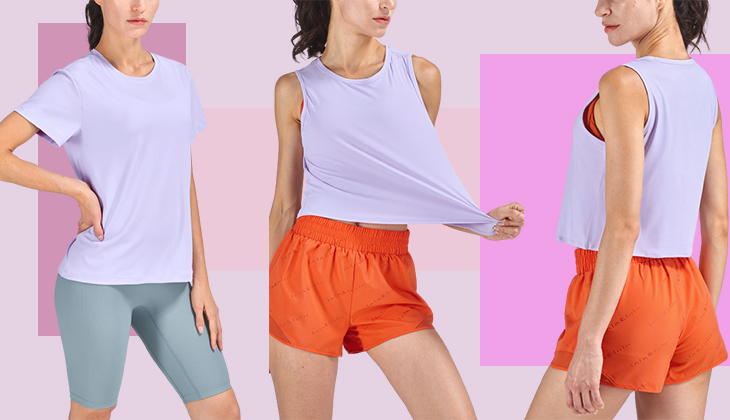 O top redondo esportivo pode dissipar o calor rapidamente e o pano é macio e fresco. Não vai sentir calor no corpo. O comprimento da parte superior é adequado para cobrir o estômago e evitar resfriados.