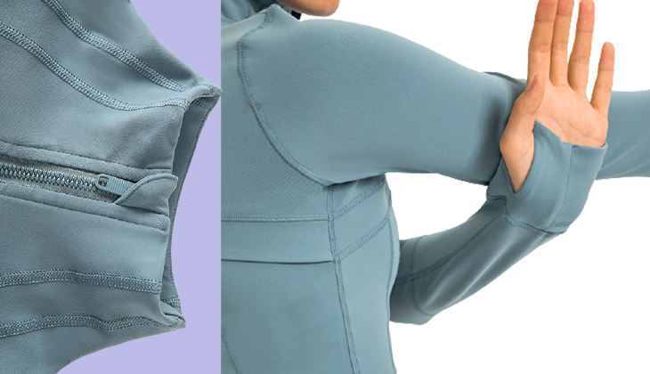 O design do zíper é fácil de usar e tirar, e a gola alta pode evitar que o vento sopre nas roupas. A manga da mão é longa até o meio da mão.