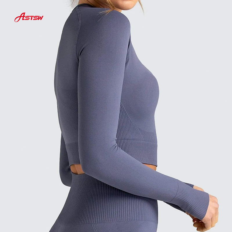 Top feminino de manga comprida para ioga sem costura