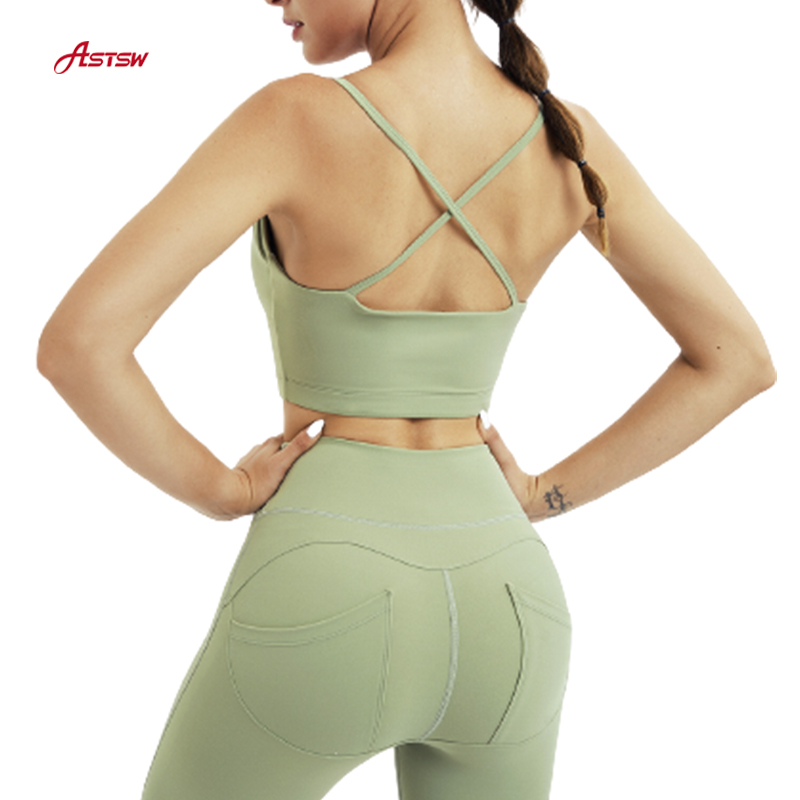 * Sutiã esportivo feminino. Sutiã de treino. Roupas de ginástica no atacado. Conjunto de roupa de ginástica feminina, leggings de ginástica e sutiã esportivo.